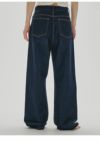 ストレートラインで全体的にゆるっとしたルーズ感のあるシルエットが魅力のデニム。 腰履きでマニッシュな雰囲気で履いていただくのがおすすめな一枚。 生地端を贅沢に使用しているのため、裾を折り返しても履いていただけるように少し長めの着丈にしています。