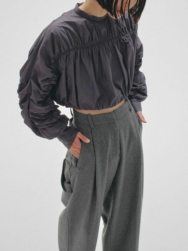【TODAYFUL SALE 20%OFF】【即納】トゥデイフル TODAYFUL 2024winter トップス Standcollar Gather Blouse スタンドカラーギャザーブラウス クロップド丈 長袖 12420413