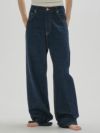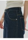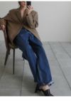 ストレートラインで全体的にゆるっとしたルーズ感のあるシルエットが魅力のデニム。 腰履きでマニッシュな雰囲気で履いていただくのがおすすめな一枚。 生地端を贅沢に使用しているのため、裾を折り返しても履いていただけるように少し長めの着丈にしています。