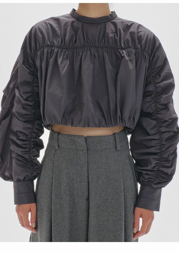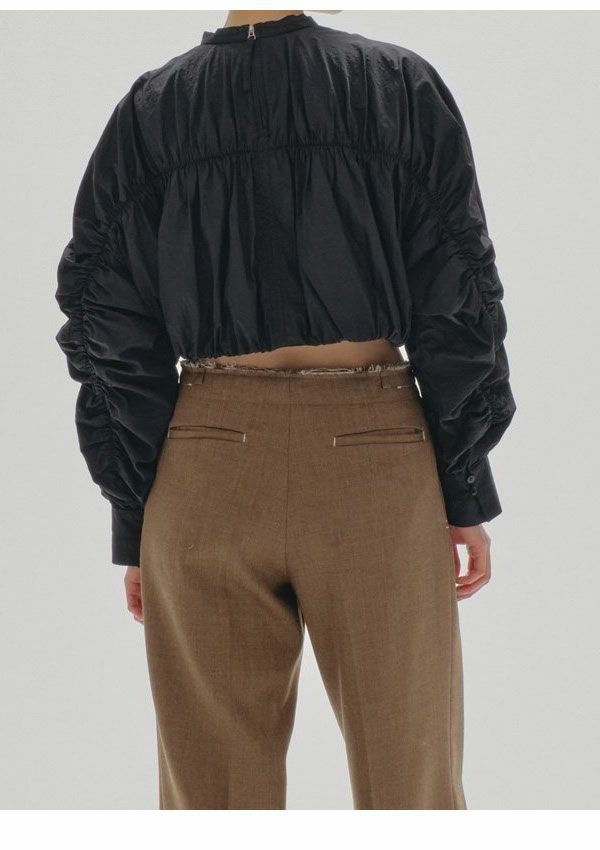 【TODAYFUL SALE 20%OFF】【即納】トゥデイフル TODAYFUL 2024winter トップス Standcollar Gather Blouse スタンドカラーギャザーブラウス クロップド丈 長袖 12420413