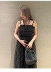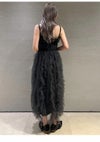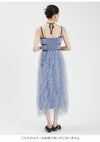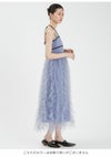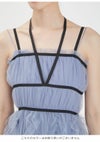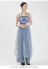 シアーな素材感の美しい重なりをデザインしたチュールフリルホルタードレス。 上身頃は細かく縦のドレープを施し、スカート部分は太巾のフリルをふんだんにあしらったメリハリのあるデザインに仕上げています。 肩紐で丈感の調整が可能で、後ろ見頃にゴムを入れることで着心地の良さにもこだわりました。