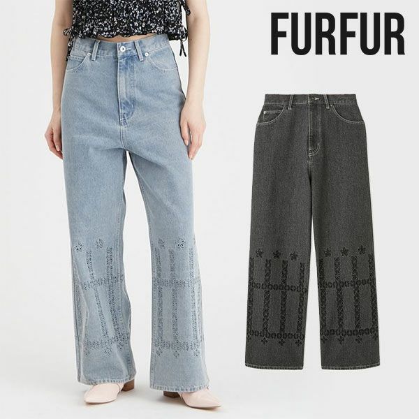 【SALE60%OFF】 【即納】 ファーファー FURFUR ボトムス 24秋冬 カットワークデコレーションデニムパンツ フルレングス rwfp244113