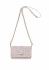 スマートフォンやコスメなどが入る、便利なサイズ感のフォンホルダー。 上品で高級感のあるツイード素材がポイント。 外側にもポケットをあしらい、使いやすさにこだわりました。 同素材のRWGB261513・RWGB261514と合わせてお使いいただくのもおすすめです。