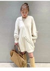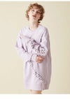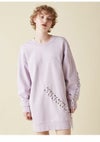 トップスとしても活躍できるオーバーサイズのミニ丈スウェットワンピース。 大きなハート型のパッチワークを目立ちすぎないように同色でお袖と身頃に落とし込み、ステッチで囲みさりげなく存在感を出しました。 ハートの周りにはレースアップを施し、甘さの中にハードなエッセンスを投入して今年らしい印象に仕上げました。