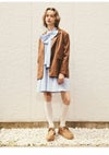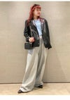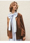 トレンドのオーバーシルエットのジャケットに、キャッチーなハートモチーフの小花柄刺繍が施されたアイテム。 刺繍はBOHOのテーマらしく、クロスステッチで表現されています。 綿麻調の裏地を使用し、さらっと羽織っていただけます。 色ごとに素材を変えており、トレンドのチェック柄、薄手の合皮、スエード調合皮を使用しました。 程よいオーバーシルエットになるよう薄い肩パッドを使用し、中にニットも着られるサイズ感でシルエットにもこだわりました。