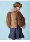 3種類の質感、色の異なるエコファーを組み合わせて華やかな雰囲気で作成したライダースブルゾン。