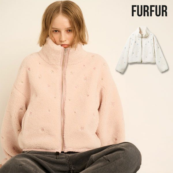 昨年のボア素材のブルゾンをより着やすく、ワイド感のある短丈シルエットでスタイル良く見えるようにアップデートしました。 立体感のあるビーズ&スパンコールの小花柄刺繍を施し、華やかさをプラスしています。 スタンドカラーなのでファスナーを上まで閉めると首元も暖かくして着用いただけます。