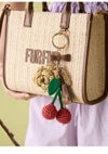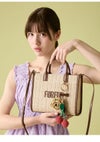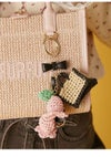 ラフィア風の糸を1つ1つ手編みで仕上げた、夏らしいクラフトチャーム。 季節感あふれるモチーフを組み合わせ、フレッシュで遊び心のある印象に。 トップの小ぶりなリボンで愛らしさを添え、 レザーのキーリングが日常に寄り添う雰囲気を演出。 見た目の可愛らしさと、身につける楽しさのギャップが心を躍らせる一品です。