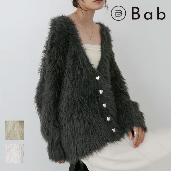 万能シャギーニットカーディガンが登場です! ボタン部分はハートになっていてガーリーな一面もあるカーディガンは、 この秋冬大活躍すること間違いなしです。 アイボリーのみボタン部分がゴールドに、そのほかのカラーはシルバーになっています。 ふわっとしていて暖かいシャギーが着るだけでフェミニンな印象を与えます。 Vネックで華奢見えするようなデザインになっています。 ■FABRIC ふわっと柔らかく、高級感のある着心地のいいシャギーカーディガンです。 ■COORDINATE サテンスカートやニットスカートなどフェミニンな組み合わせ同士が相性◎です。