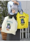 アーティストRyuAmbeとのコラボレーション。しっかりとしたポリエステル素材のバッグ。ハリと厚みのある素材で軽さと安定感があります。手のひらサイズに折りたため、取り出し口に付属のゴムで簡単にまとめられます。エコバッグとして、荷物が増えた時のサブバッグとして便利に持ち歩けます。ちょっとした買い物はもちろん、プレゼントとしてもおすすめ。持ち手を片側に引き出すとショルダーバッグとして使用できます。