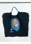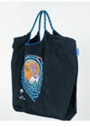 サン ヒデアキ ミハラのデザイナー三原英詳によるショッピングバッグBall&ChainアーティストRyuAmbeとのコラボレーション。しっかりとしたポリエステル素材のバッグ。ハリと厚みのある素材で軽さと安定感があります。手のひらサイズに折りたため、取り出し口に付属のゴムで簡単にまとめられます。エコバッグとして、荷物が増えた時のサブバッグとして便利に持ち歩けます。ちょっとした買い物はもちろん、プレゼントとしてもおすすめ。持ち手を片側に引き出すとショルダーバッグとして使用できます。