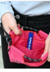 しっかりとしたポリエステル素材のバッグ。ハリと厚みのある素材で軽さと安定感があります。手のひらサイズに折りたため、取り出し口に付属のゴムで簡単にまとめられます。プレゼントとしてもおすすめです。デザイン性のあるショルダー付き。