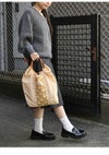 Ball and Chainは大切に使い続けたいと思える優れたデザインのショッピングバッグです。 耐久性、撥水性に優れた素材に、 グラフィックデザインをそのまま「刺繍」で施すことで、 高級感がありデザイン性の高いバッグとなっています。 丸く折りたたみ付属のゴムバンドでとめると手のひらほどのコンパクトサイズになるため、持ち運びにも便利です。普段のお買い物はもちろん、エコなプレゼントとしてもおススメです。