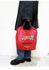 Ball and Chainは大切に使い続けたいと思える優れたデザインのショッピングバッグです。 耐久性、撥水性に優れた素材に、 グラフィックデザインをそのまま「刺繍」で施すことで、 高級感がありデザイン性の高いバッグとなっています。 丸く折りたたみ付属のゴムバンドでとめると手のひらほどの コンパクトサイズになるため、持ち運びにも便利です。 普段のお買い物はもちろん、エコなプレゼントとしてもおススメです。