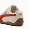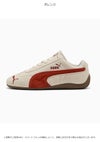 トラックレースのスピードにインスパイアされた、プーマスピードキャットOG。 スピードキャットは、1999年に誕生し、80年代から90年代にかけてF1グランプリのドライバーが 履いていた耐火レーシングシューズをベースにしたライフスタイルシューズです。 レーシングにインスパイアされたなめらかなラインと空気力学に基づいたデザインにより、 ファッションやスニーカーカルチャーに衝撃を与えてきました。 今回、再びリリースされるスピードキャットOGは、F1レーシングチームを彷彿とさせる豊富なカラー展開と スウェード素材をふんだんに使用した仕上がりとなっています。 2000年代初頭のレーシングウェアに敬意を表し、つま先には“プーマキャット”の刺繍が施され、 シュータンとフォームストリップの上にはゴールドのロゴがあしらわれています。