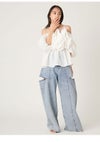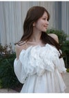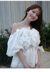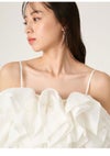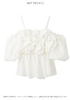 【花をモチーフにしたボリュームフリルが目を引く主役ブラウス】 まるで自分が花になったような、とっておきの華やかさを表現したブラウス。 縦にあしらったフリルはビッグフラワーをモチーフに、 立体的かつ存在感たっぷりに仕上げました。 デコルテが美しく見えるすっきりとした首周りや、 二の腕カバー効果のあるボリュームスリーブ、 メリハリを作るペプラムシルエットなど、 スタイルアップを叶えるディテールもポイント。 肩を落としてオフショルダーとしても楽しめるので、 着回し力も抜群です。 また、アジャスター付きのストラップと胸下に入れたゴムで、 安心感のある着心地にもこだわりました。 カラーは女性らしいピュアなWHT、爽やかなBLU、 シックで大人なBLKの3色展開です。