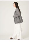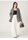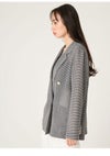【軽やかで心地いいカラミ織りで仕立てたダブルジャケット】 繊細な抜け感を纏うカラミ素材のジャケット。 程よいシャンブレー感と天然ライクで風合いのカラミ織りが 、軽やかさと上品さを叶えます。 素材には、ドライタッチで心地よいポリエステル×ヴィスコース(レーヨン)素材を使用。 清涼感や通気性に優れているので、 暑さが気になる時期も快適に羽織っていただけます。 フロントデザインは、クラシカルなダブルブレストでマニッシュに。 ロゴ入りのメタルボタンを採用することで、さりげない華やかさも添えました。 また、程よいドロップショルダーや少し下げた衿など、 適度にゆとりを持たせたシルエットで簡単にサマに。 共地リボンでウエストマークをしてフェミニンモードに楽しむのも素敵です。 合わせるアイテムを選ばないデザインですが、 今シーズンは特にニットコンビワンピースを合わせる上品なオフィスコーデや、 デニムを合わせるカジュアルスタイルがおすすめ。 色展開は、春夏らしいIVR、モノトーンのチェックライクなMIX、 都会的なBLKの3色をご用意しました。