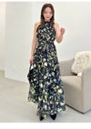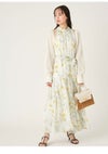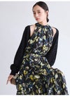 【オリジナルプリントが映えるホルターネックワンピースが今年も登場】 FRAY I.Dで人気のホルターネックワンピースがアップデートして再登場。 今季は、ティアード切り替えを2段にしてボリューム感をプラス。 たっぷりのギャザーとややアシンメトリーなラインがドラマティックなシルエットを叶えます。 セットのリボンはウエストマークだけでなく、バックネック・サイドネックで結ぶことも可能。 シーンに合わせてさまざまなスタイルが楽しめます。 軽やかなシアー素材や、バックシャンな肌見せデザインも素敵に映えるポイント。 色展開は全3色で、全てFRAY I.Dオリジナルの華やかなプリントを施しました。 YELは水彩と線画のミックスが繊細で優美に、BLUは大人なチューリップ柄、BLKは大胆に描かれたボタニカル柄で、どれも目を引く存在感を発揮してくれます。