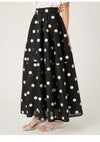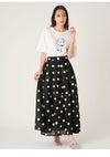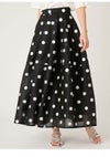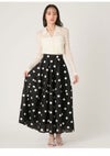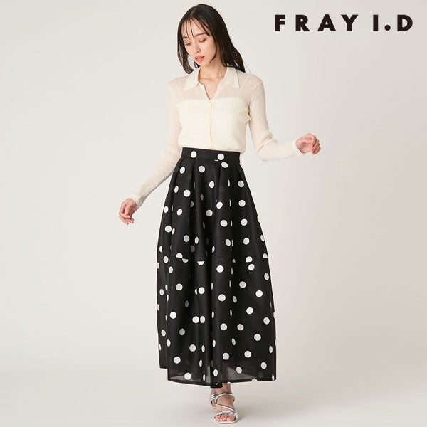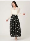 【ボンディングチュールの構築的なフレアスカートが甘めモード】 ハリのあるボンディングチュールを使用した、甘さの中にエッジィな魅力が光るスカート。 たっぷりのタックと切り替えを入れることで立体感をプラス。 遠くからでも目を引く構築的なフォルムが、印象に残る佇まいを叶えます。 色展開は3色。WHTとDOTは、今季トレンドのポルカドット柄。どちらもシルバーラメ糸を織り込んだドットで、スペシャルな華やかさを放ちます。 シックに仕上げた無地のBLKも大人な雰囲気で◎。スカートの存在感を際立たせるため、トップスはタックインでウエストラインを強調させたスタイリングがおすすめ。 きれいめなトップスを合わせるとフォーマルシーンでも活躍してくれます。