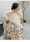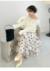 【アシメフリルのティアードスカートで華やかに着映えて】 ランダムなフリルティアードデザインを施したスカートは、 動きに合わせてエアリーに揺れる春から夏にかけてちょうどいい一着。 全体に贅沢なボリューム感は持たせつつも、 ギャザー分量を緻密に調整することで ウエスト周りはスッキリと見えるシルエットを実現。 動きを作るイレギュラーヘムも手伝って、 華やかなシルエットとスタイルアップの両立を叶えました。 ドラマティックな揺れ感をフォローするのは、 シアー感のある軽やかなリネンライクポリエステル素材。 軽量でシワになりにくいストレスフリーな着心地も魅力的です。 また、ウエスト背面ゴム仕様と左脇ファスナー開きで着脱も簡単に。 色展開は、気分が上がる爽やかな無地色のWHTとLBLU、 トレンド感のあるDOTの3色をご用意しました。