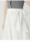 【ポロニットドッキングワンピースが洗練されたモダンなムードを演出】 異素材のコントラストが映える都会的なポロニットコンビワンピース。 リブニット部分はシャリ感のある素材を使用しミニマルモードに。 脇にラインを入れることで細見え効果もプラスしました。 スカート部分は適度なハリ感のあるドライタッチのセミシアー素材。 軽やかな風合いと、奥行きのあるパネル切り替えで、 豊かな表情に仕上げました。 バックウエストは一部ゴムで着心地もイージーに。 また、セットになった共布リボンは取り外し可能で、 印象チェンジに役立ちます。 オフィスからおでかけまでシーンレスで活躍を。 色展開は全3色。白ベースでスタイリッシュに魅せたBORDER、 衿端にラインを入れて印象を引き締めたGRY、 洗練された花柄スカートが目を引くBLKからお選びいただけます。