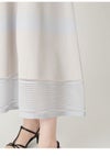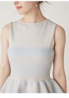 【構築的なフォルムで魅せるホールガーメントのペプラムニットワンピ】 昨年人気だったホールガーメントニットワンピがリバイバル。 今年はペプラムデザインにアップデートしました。 トップス部分とスカート部分をそれぞれホールガーメント編成で編み立て、 1枚のワンピースとしてドッキングしました。 専用の機械を用いて無縫製で編み上げ、脇線などの縫い目がなくても立体的な仕上がりに。 伸縮性にも優れ、快適な着心地です。 さらに着映えを叶えるのは、モードなボーダーデザイン。 ストレッチ性のあるポリエステル糸をベースに、 裾には透け感のある糸を組み合わせることで奥行きのある柄を表現しました。 肌離れがよく速乾性が高い生地で暑い日も心地よく。 ご家庭での手洗いが可能です。 色展開は全3色。ニュアンス配色のBEG、 ブルーとの掛け合わせが新鮮なBRW、レディライクなBLKをご用意しました。