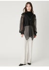 【FRAY I.Dの名品・セミシアーシャツレイヤードニットが今季も登場】 FRAY I.Dの人気アイテム・シャツレイヤードニットがリバイバル。 モックネックのノースリーブニットに、 セミシアーのオーガンジーシャツを組み合わせた、 旬な重ね着を簡単に楽しめる技ありデザイン。 ニットのアームホールにシャツを止めるボタンをセットすることで、 肩がのぞく絶妙なバランスをキープしています。 それぞれ単品でも使えるので、 幅広いシーンでフレキシブルに活躍してくれます。 シャツは、透けすぎず、光りすぎず、 そしてナチュラルなシワ感で表情を加えたオーガンジー素材をセレクト。 バックスタイルには華奢なリボンをあしらってフェミニンなアクセントを加えました。 色展開は全3色で、清涼感のあるバイカラーでお作りしたLBLU、 シーズンムードが高まるORG、モードなBLKをご用意しています。