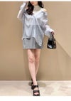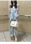 F【フリー】シャツ:総丈前66 後ろ67.5cm バスト120cm 袖丈53cm 肩幅43cm 前下がり9.5cm 裾幅62cm ニット:総丈55cm バスト64cm 肩幅28cm 前下がり4.5cm 裾幅32cm ※ブランド公式表記