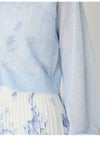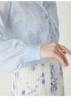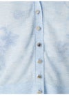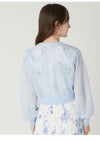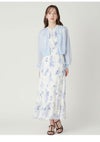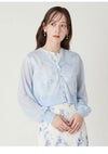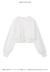 【透明感のあるシアー素材のクロップドカーデは万能に活躍】 繊細なラメがきらめくシアー素材でお作りした、軽やかなクロップドカーディガン。 優しい透け感がスタイリングに軽やかなニュアンスを加えます。 フロントにはアクセントとして白金のメタル釦を多釦で配置。 また、首元や前立てにはリンキングデザインを効かせ、 ミニマルながらも洗練された印象に整えました。 短丈&コンパクトなシルエットは、フィットしすぎず、程よく身体をなぞる設計に。 パンツにもスカートにも合わせやすく、スタイリングの幅が広がります。 胸元は深すぎず浅すぎずの絶妙なVネックに。 デコルテを美しく見せ、 プルオーバー風の着こなしもキマりやすいバランスです。 今シーズンは、フリルウエストシャーリングプリント(FWFO262025) 合わせが特におすすめです。 その他、肩掛けやタスキ掛けにしたり、 冷房や紫外線から肌を優しく守るカーディガンにしたり、 フレキシブルに活躍してくれます。 色展開は4色。軽快に映えるWHT、清涼感のあるBLU、 キャッチーかつ華やかなYEL、知的で上品なNVYをご用意しました。