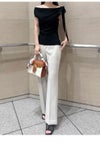 【ウォッシャブル】【着回しやすさと洗練さを兼ね備えたアシメネックドレープニット】 昨年も大人気だったワンショルドレープニットがリバイバル。 今年は取り外し可能なショルダーリボンをややワイドな幅に設定して、 より印象的に仕上げました。 首元はデコルテがのぞくアシンメトリーな折り返しデザイン。 ワンショルのほか、オフショルダーやノースリーブとしても楽しめ、 さまざまなシーンや着こなしにマッチします。 ほんのりシェイプさせたウエストから緩やかに広がるシルエットもこだわりのひとつ。 右サイドにはスリットを入れて、 タックインもタックアウトも決まりやすいバランスに仕上げています。 素材は、さらりとした心地よい肌触りのレーヨン・キュプラ混。 総針で適度に肉感を持たせながら編み上げ、 高級感の安心感のある着心地を叶えました。 ウォッシャブルでお手入れもイージー。 色展開は3色。使いやすいWHT、鮮やかなトーンがキャッチーなBLU、 色気のあるBLKからお選びいただけます。