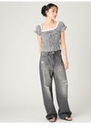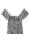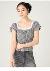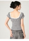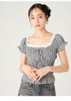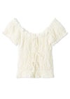 【シャーリングブラウスで大人の甘さを堪能】 大人のガーリー気分に寄り添う、オフショルダーのシャーリングブラウス。 襟周りにカットワーク刺繍のスカラップレースを挟み込みアクセントに。 フロントリボンやボリュームスリーブも相まって旬な甘さを加えます。 あくまで大人っぽく楽しめるように、 肩に乗せても着られる2WAYオフショルダーで肌感をプラスしてどこか色っぽく。 程よくボディラインにフィットするコンパクトなシルエットが、 スタイルアップも叶えてくれます。 今シーズンはデニムパンツを合わせたカジュアルコーデがおすすめです。 色展開は全3色。ポコポコとした凹凸感のある素材で表情豊かに仕上げたIVRとBLK、 伸縮性のある柔らかい生地でお作りした上品なCHECKをご用意しました。
