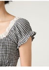 [IVR・BLK]綿79%、ナイロン20%、ポリウレタン1% [CHECK]ポリエステル73%、綿26%、ポリウレタン1% 別布:レース:綿100%