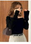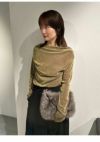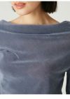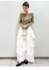 【透け感がありつつ秋冬ムード。人気のフロッキーチュールトップス】 人気のフロッキーチュールを使った、上品な肌見せが叶うトップス。 肩を隠して着ると、胸元に贅沢にあしらったタックデザインがポイントとなり、一枚で華やかさを演出できます。エレガントに肌をカバーできるので、オフィスでも重宝します。 また、肩を落とすことでワンショルダーとしても着用できて、上品な肌見せが叶い、オフの日にも活躍します。 伸縮性に優れたフロッキーチュール素材は、柔らかく透け感のあるチュールをベースに、ベロアのようなフロッキー加工を施した触り心地のよいトレンド生地。 程よい透け感がありながら秋冬の素材感も楽しめる、長い期間着られるアイテムです。 カラーはバリエーション豊かな4色をご用意。透け感が際立つエレガントなIVR、洗練された雰囲気のBLU、こなれ感があってオシャレなKKI、着回しが効くBLKの4色展開です。