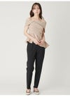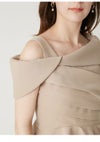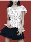 【フェミニンモードが一枚で完成するアシメペプラムトップス】 女性らしさ溢れるペプラムブラウスに、ワンショルデザインでモード感をプラスしました。 胸元にはタックドレープを大胆に施しつつ、ウエスト切り替えから裾に向かってアシンメトリーなフレアを入れて華やかに。 計算された構築的なシルエットがエッジィな甘さを演出します。 右肩のストラップは取り外し可能で、オフショルダーとしても着用可能。 衿ぐりにはゴムを入れているので、ストラップレスでも安心感のある着心地は続きます。 合わせるボトムは、パンツやすっきりとしたシルエットのスカートが好バランス。 色展開は3色。トレンド感のあるDOTと、日本製の上質な生地を使用したBEG・BLKをご用意しました。