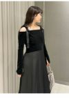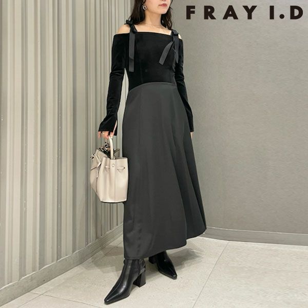 - 【SALE60%OFF】【即納】フレイアイディー FRAY I.D ワンピース 24秋冬 リボンショルダードレス ドレス ロング丈 長袖 オフショルダー fwfo245506