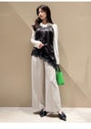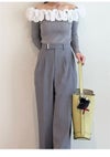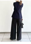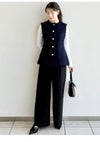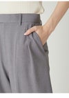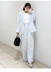 【ウォッシャブル】【洗練ムードと美脚見えを叶えるセミワイドストレートパンツ】 美しいシルエットにだわったセミワイドのストレートパンツ。 太すぎず細すぎずの絶妙なラインに加え、センタープレスを前後ヒップあたりまで入れた立体的なフォルムが、脚を長く、きれいに見せてくれます。 同素材を使用したダブルスリットシンプルジャケット(FWFJ261054)とセットアップ着用が可能で、パンツのウエストにはジャケットのメタルボタンと色をリンクさせたワニカンを付けてアクセントにしました。 リサイクルポリエステル素材を使用しており、ネットに入れてご自宅での洗濯が可能です。
