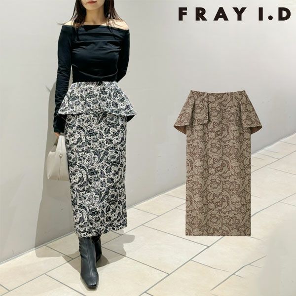 【SALE60%OFF】【即納】 フレイアイディー FRAY I.D ボトムス 24秋冬 【William Morris】ペプラムスカート ロング丈 スカート fwfs244801