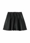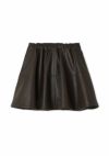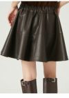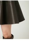 【リアルなレザー調のサーキュラースカート。たっぷりボリュームがスタイリングを華やかにアップデート】 ボリュームたっぷりに波うつ、動きのあるヘムラインで、スタイリングが一気に華やぐサーキュラーミニスカートです。 合成皮革にヴィンテージ調加工を施し、綺麗めながらクラシカルにみえる素材を使用しました。 肉厚でリッチな質感もあるので、モードに見える大人のための一枚になっています。 ウエストは着脱スムーズなゴム仕様で、ショートパンツ型のインナー付き。安心して着用いただけます。
