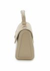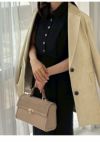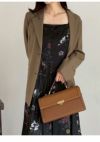 【かっちりした横長スタイルが新鮮、トラッドなムードが上品なフラップ付きバッグ】 横長デザインできれいめに持てる、上品なフラップ付きバッグ。 シックな佇まいで、ニューベーシックなスタイルを提案します。 横長の形はアクセントになり、コーディネートの鮮度をアップしてくれます。 フラップと本体は、同色ですがさりげなく違う質感の素材を組み合わせ、パイピングでかっちりとした印象の中にも遊びをオン。 高級感があり、合皮ながらリアルレザーのような雰囲気を楽しめます。 500mlペットボトルが入るサイズ感で、デイリー使いしやすいように仕上げました。 また、背面にはジップつきのポケットがあるので、フラップを開かずにちょっとしたものを入れておけて便利です。 ハンドルで持つのもおすすめですが、取り外しができて、長さ調整も可能なショルダーベルト付きなので、2wayで楽しめます。 カラーは3色をご用意。上品な印象のBEG、トラッドなムードが新鮮なCML、モード感のある定番色BLKで展開しています。