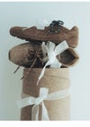 【【MOHI別注】トレンドムード漂う別注スニーカーが登場】 スペイン発のシューズブランド【MOHI(モヒ)】のFRAY I.D別注スニーカーが登場。 スエードのパネルを組み合わせたアッパーが印象的なモデルに、 FRAY I.D別注として異素材のリボンとコードを重ねたデザインに。 シューレースはオーガンジー・カラーに合わせたコード・平紐の三種をセット。 光沢感のあるオーガンジーリボンがフェミニンな抜け感を、スポーティなコードシューレースがモードなエッジを添えます。 ベーシックな平紐もセットにしているので、様々なアレンジが楽しめます。 程よいボリュームソールがスタイルアップを叶えつつ、足元からトレンド感を引き立てる一足。 カジュアルにもきれいめにも合わせやすく、シーズン問わず活躍します。