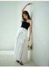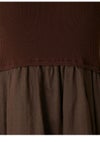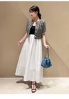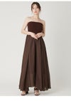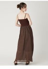 【ニット×リネンのドッキングキャミワンピースに季節感が上昇】 ニットビスチェとリネンスカートをドッキングさせたキャミワンピース。 取り外し可能なカップイン仕様で、インナーに困らず1枚でサラッと着ていただけます。 ニット部分は、なめらかなリブ編みにし、 減らし目を入れることで身体に美しく沿うシルエットに。 パット部分は嵩張らないように薄い天竺にしました。 高めの切り替え位置から広がるスカート部分は、たっぷりのボリュームが印象的です。 スタイリングの幅が広がるように、キャミソールストラップは取り外し可能にし、 ベアワンピとしても楽しめる2WAYにしました。 色展開は全3色。鮮やかな発色で目を引くTUQ、こなれ感が漂うBRW、 モノトーンでモードに仕上げたMIXからお選びいただけます。 スカート部分と同じ素材でお作りしたオーバーシャツ(FWFB262032)との セットアップ着用が特におすすめです。