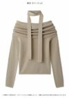 【シルキーなウール混糸で上品に仕上げたオフショル。人気の細ボウタイもセットに】 繊維が細いメリノウールとアンチピリングのアクリルを混紡した糸で編み立てた、 シルキータッチで柔らかな風合いのニットです。 オフショルデザインのプルオーバーで、シンプルながらデコルテを見せるデザインは 女性らしさを引き立ててくれます。 ショルダーの折り返し部分を大きめに取っているので、 着たときにデコルテまわりにドレープがキレイに出るのも華やかです。 また、オフショルダーにもワンショルダーにもなり、肩を隠して着ることもできるので、 シーンに合わせて程よい肌見せが可能。 アクセントに、トレンドの細めなボウタイをつけているので、アレンジして楽しめます。 極上の肌ざわりで、シンプルながら、綺麗に見える編み地が洗練された印象に見せてくれます。 ワイドパンツなどと合わせて上品な大人ムードにコーディネートしたり、 デニムなどと程良いカジュアルにアップデートしたり、合わせやすさもうれしいアイテムです。 カラーは3色をご用意。 上品でエレガントなBEG、スマートな印象のBLU、モード感あるBLKで展開しています。