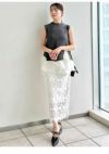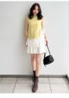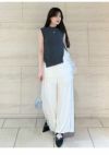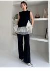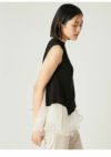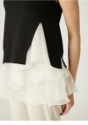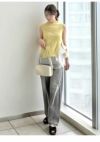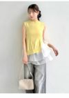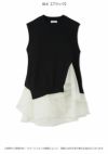 [BEG・BLK]ニット:レーヨン55%、ナイロン36%、シルク6%、ポリウレタン3% [YEL・GRY]ニット:再生繊維(セルロース)55%、ナイロン37%、シルク5%、ポリウレタン3% カットソー部分:ポリエステル100%/オーガンジー部分:ポリエステル100%