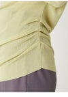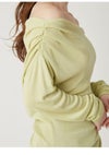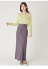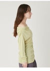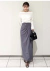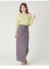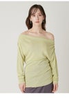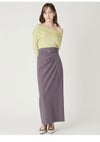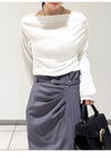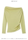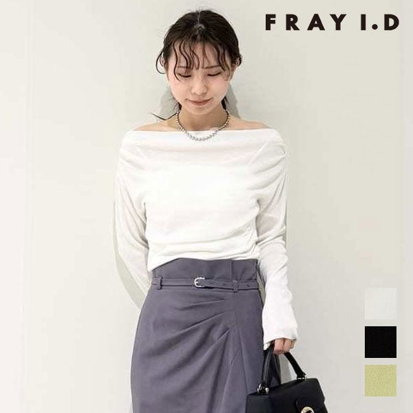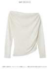 【アシメドレープが上品モードなオフショルニットトップス】 タックで表現したアシンメトリーなドレープがモードに映えるニットトップス。 前後どちらから見てもサマになる立体的なデザインは、サラッと着るだけでも洒落た存在感を発揮します。 デコルテが美しく見えるネックラインは、肩を上げ下げできる2WAY。 オフショルダーにして洗練された肌見せスタイルを楽しむのもおすすめです。 生地にはシルク混のレーヨン素材を使用し、とろみと光沢感のある上質な風合いに仕上げました。 ボトムを選ばずにON・OFF問わず活躍してくれますが、今シーズンは特にベルト付きタックデザインストレートスカート(FWFS261058)とのコーディネートがおすすめです。