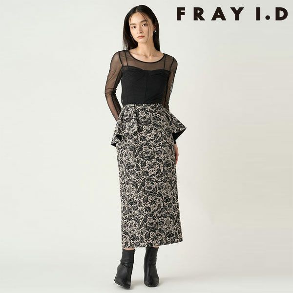 【SALE60%OFF】【即納】 フレイアイディー FRAY I.D ボトムス 24秋冬 【William Morris】ペプラムスカート ロング丈 スカート fwfs244801