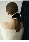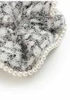 【パールビジューのヘムラインで上品に仕上げたシュシュ】 ヘムラインに沿ってパールビジューをぐるりと贅沢にあしらったスペシャルなシュシュ。 色展開は全3色で、BRWとBLKはクラシックな光沢感を放つベロア素材、WHTはエレガントなツイード素材でお作りしました。 それぞれの素材に合わせてパールビジューのサイズを絶妙に変化させているため、華美になりすぎず大人な華やかさが叶います。 仕上げにFRAY I.Dのオリジナルロゴチャームをプラス。 髪に結ぶのはもちろん、手首にアクセ感覚で付けたり、パーティや特別な日にもぴったりです。ギフトにもおすすめ。