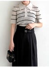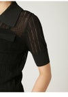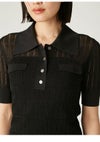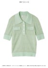 【スポーティーなニットポロを、繊細なアイレットで女性らしく。ほんのりシアーが◎】