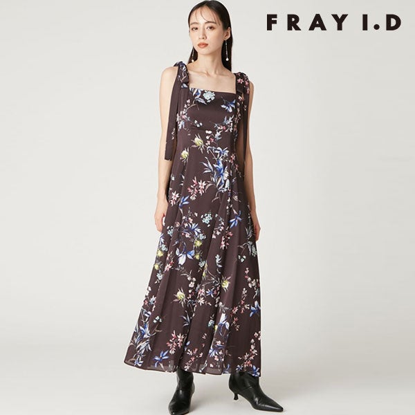 SALE!在庫限りの早い者勝ち 【SALE50%OFF】【即納】 フレイアイディー FRAY I.D ワンピース 25秋冬 リボンディテールフローラルワンピース ロング丈 ノースリーブ 花柄 fwfo255077