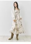 【アレンジが楽しいリボンでフローラルワンピに自分らしい華やぎを】 FRAY I.D15周年を記念した、リボンがテーマのカプセルコレクション。 繊細なタッチで描いたオリジナルのフローラルプリントにビッグリボンをトッピングしたワンピースは、とっておきの華やかさをもたらします。 リボンは、肩の上・前身頃の肩ひも付け根・後ろ肩ひものバックルいずれかに結び付けることが可能。 シンプル気分の日はリボンを外したりと、お好みに合わせてカスタムを楽しめます。 大人っぽくきれいに着ていただけるように、素材は光沢感のあるものをセレクト。 よく見ると細かなドット柄で、縦筋が入った楊柳サテンのような風合いが洗練されたムードを添えます。 上品な揺れ感を楽しめるフレアシルエットも◎。 カラー展開は、華やかなMNT、上品で秋らしいBRW、落ち着いたLBEG、ノーブルなMIXの4色。 MIXは単色の黒リボンでお作りしました。