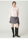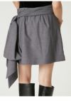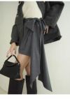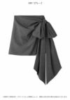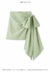 【大胆なリボン使いが目を引くドラマティックなミニスカートを主役に】 サイドリボンを大胆にあしらったスペシャルな一枚。 リボンはボリュームたっぷりに、流れるように長さをしっかり取ることで都会的かつモードな表情に。 リボンに繋がるように配したドレープ入りのラップでデザインも、洒落たムードを高めてくれます。 シルエットは程よく広がるAラインですっきりと、脚がきれいに見えるバランスに。 ニットやスエットなどシンプルなトップスを合わせるだけでコーデが完成します。 カラー展開は全3色。タフタ素材でモダンに仕上げたMNTとBLK、杢調がこなれ感のあるGRYがラインナップ。